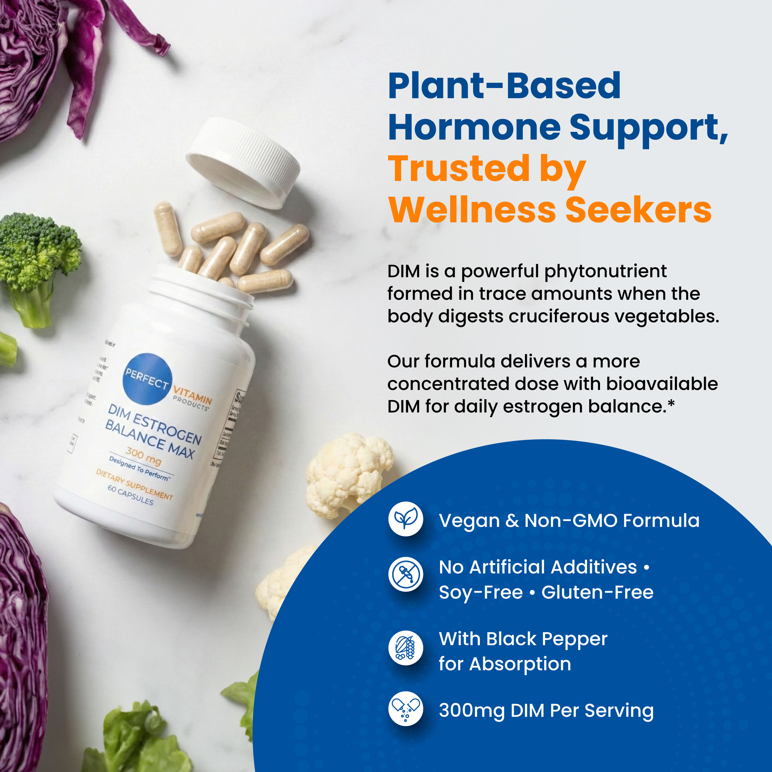 Designed for individuals seeking simple and effective hormonal support, DIM Estrogen Balance Max delivers clean, plant-based ingredients in easy-to-take capsules.