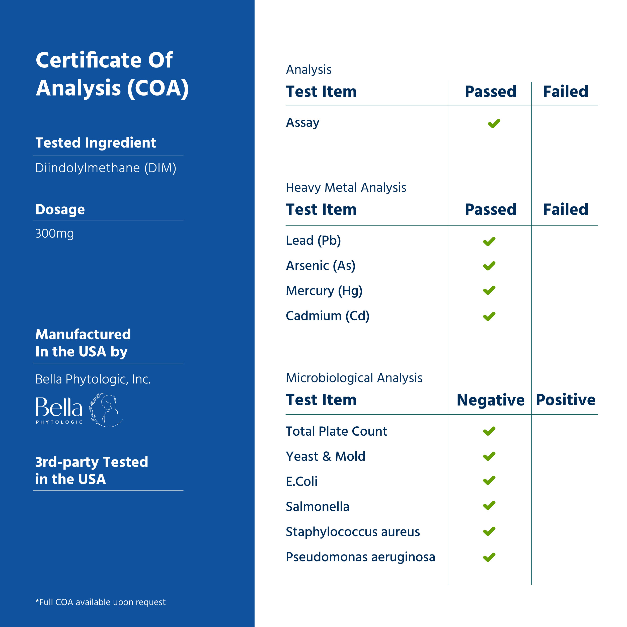 Diindolylmethane (DIM) is a compound formed during the digestion of indole-3-carbinol, a natural substance found in cruciferous vegetables such as broccoli, Brussels sprouts, and cabbage.*
